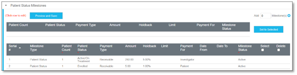 3. The input number of milestone rows will display. Use the fields to enter information as needed.