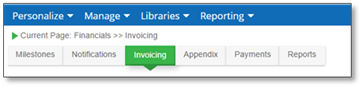 1. From the Financial Open Milestone page, select the Invoicing tab.