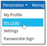 1. Click the Personalize menu in the upper-left hand corner of the screen and select My Links.