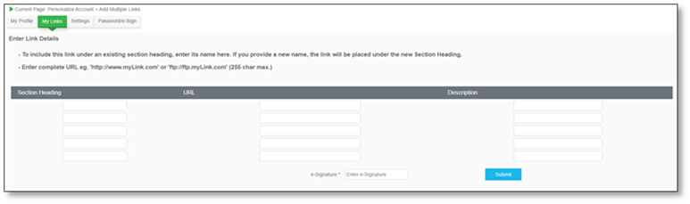 4. To save the new links, enter your e-Signature and click Submit to confirm.
