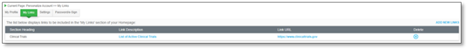 My Links page view: