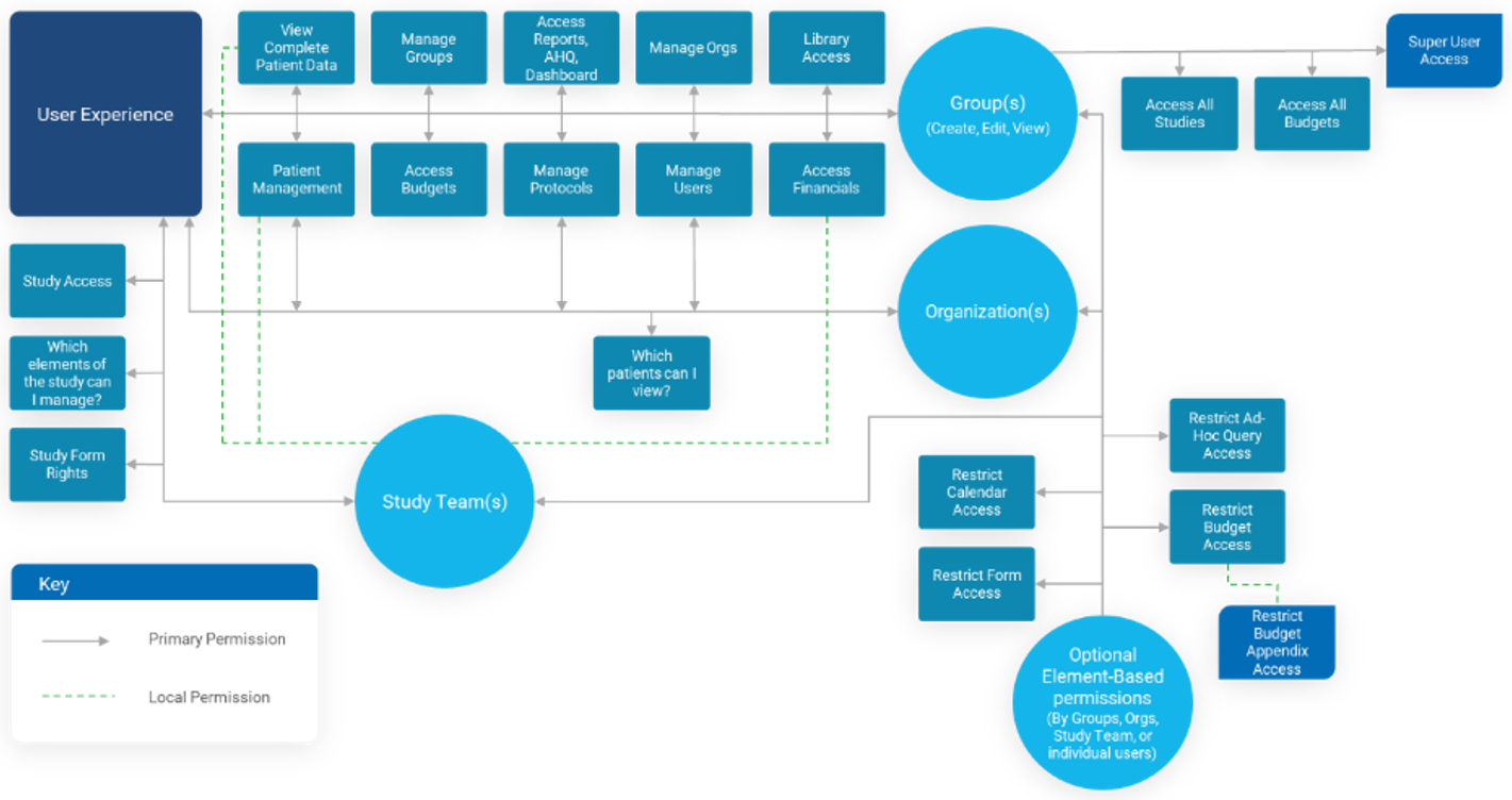 It is highly recommended to consult with your Velos implementation partner to map out your organizations and groups before building out your first studies.