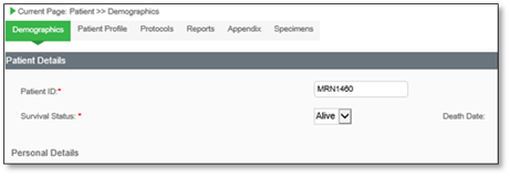 If you did not select a study, the Patient Demographics page displays after saving the patient record.