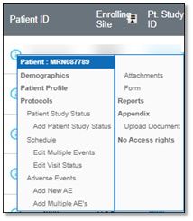 a. Or, first right click on the i in a Patient ID column, while on the Enrolled tab, to view a quick access panel, and then click Protocols or a different desired page, as needed.